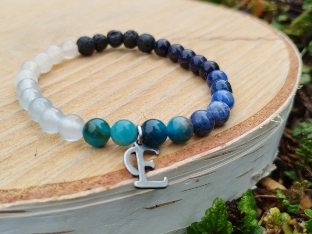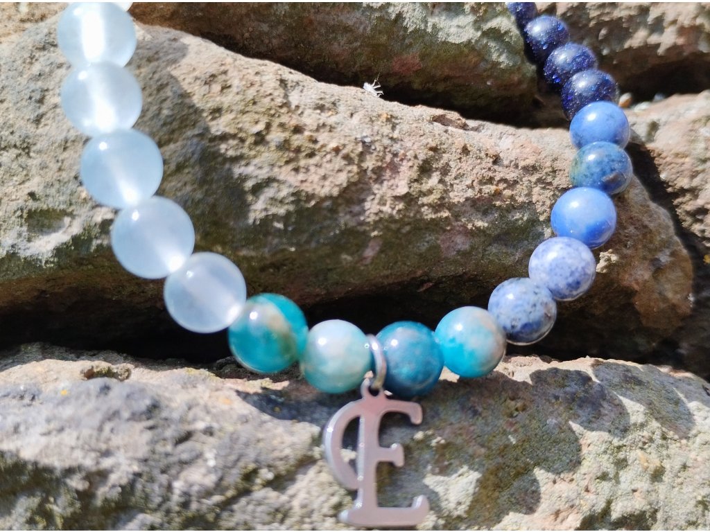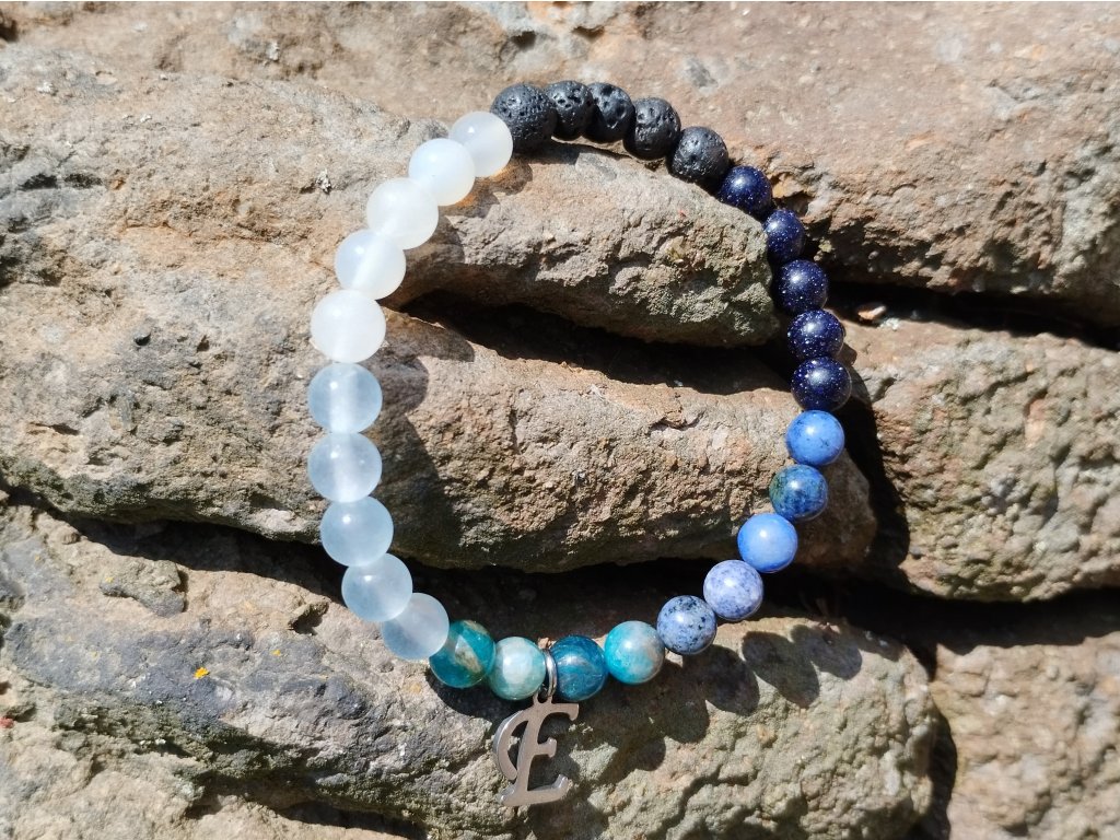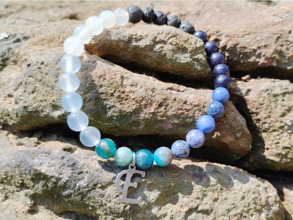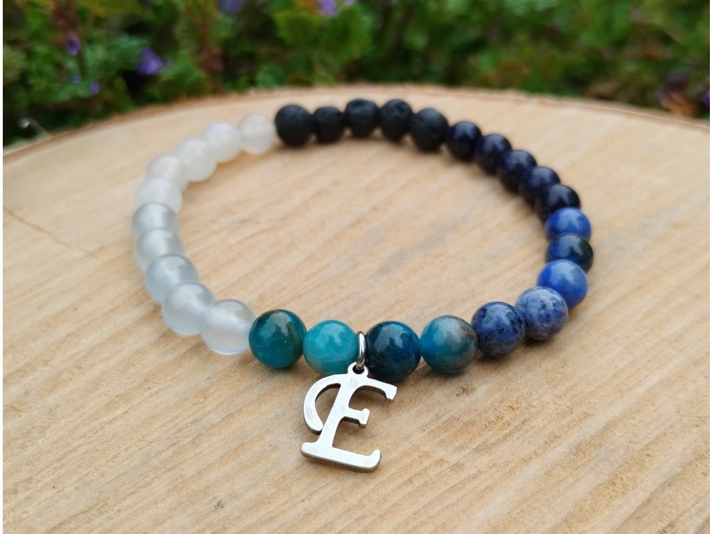 Součástí náramku je i písmenko z chirurgické oceli – může být počátečním písmenem jména, symbolem tajného významu, nebo jen připomínkou něčeho, co si necháváš pro sebe. Co v něm uvidíš ty, je jen na tobě.
