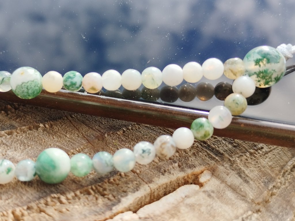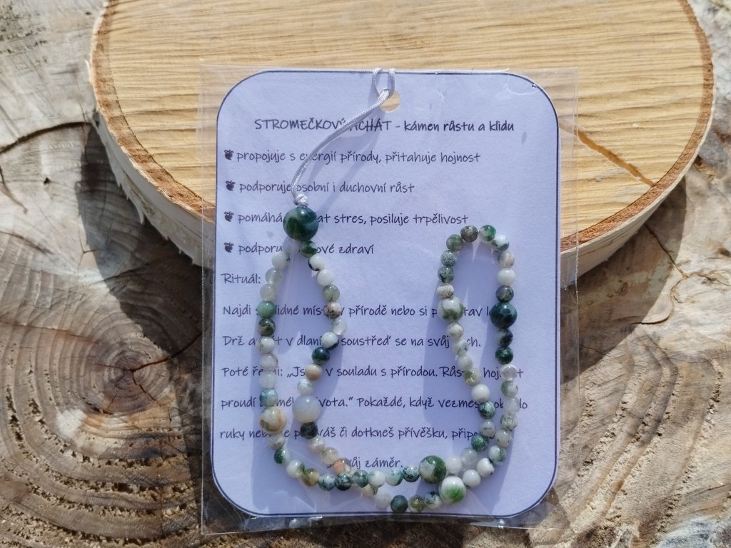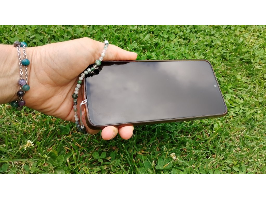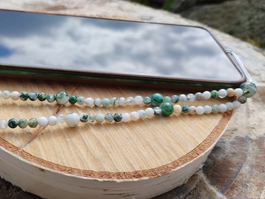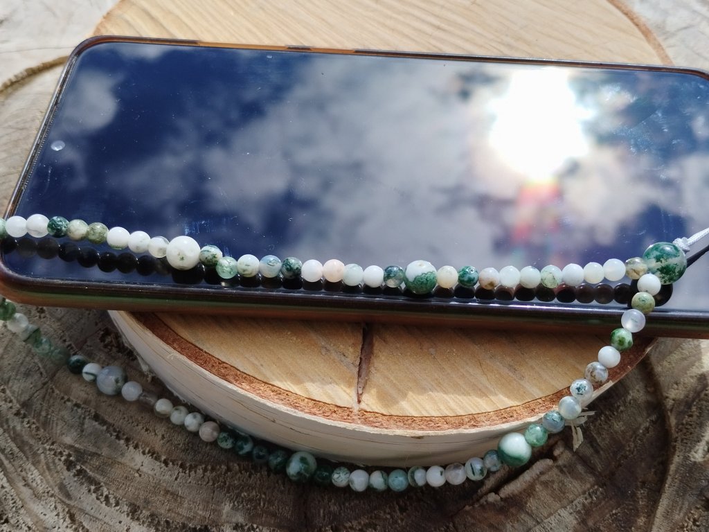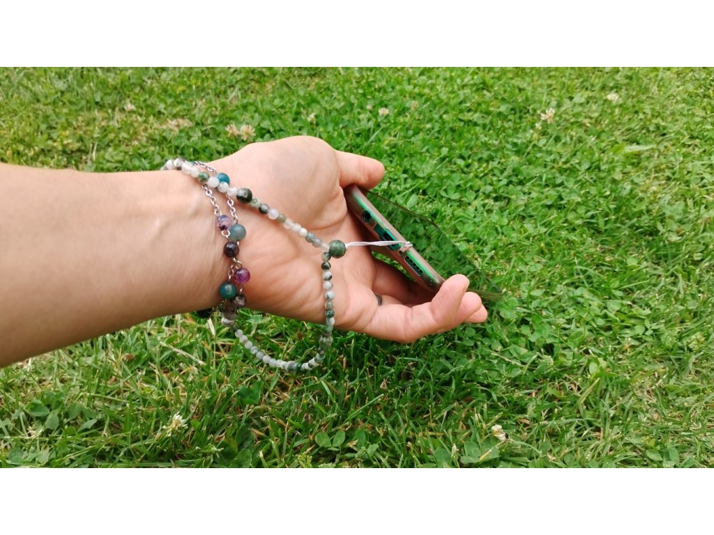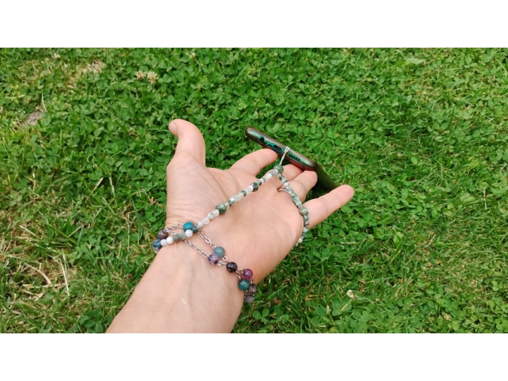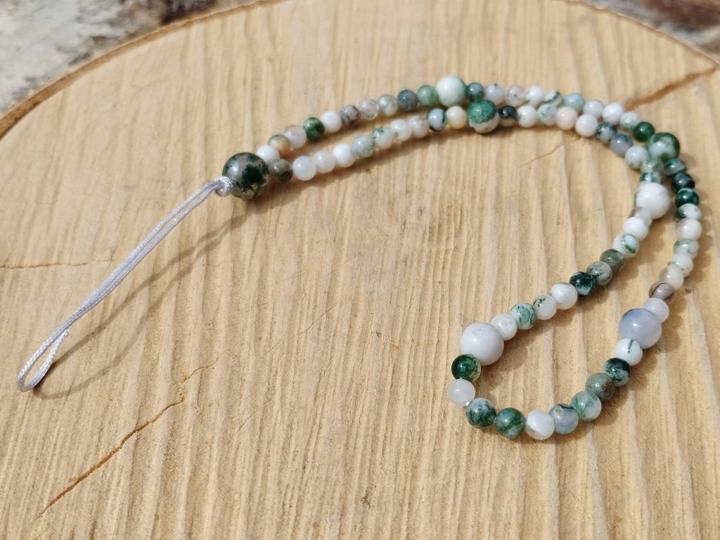 Minerální přívěsek/poutko na mobil ze stromečkového achátu – propojení stylu, praktičnosti a přírodní symboliky v jednom elegantním detailu.