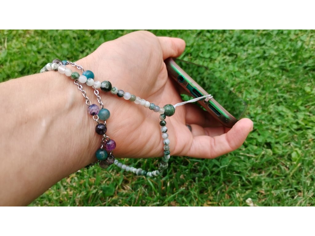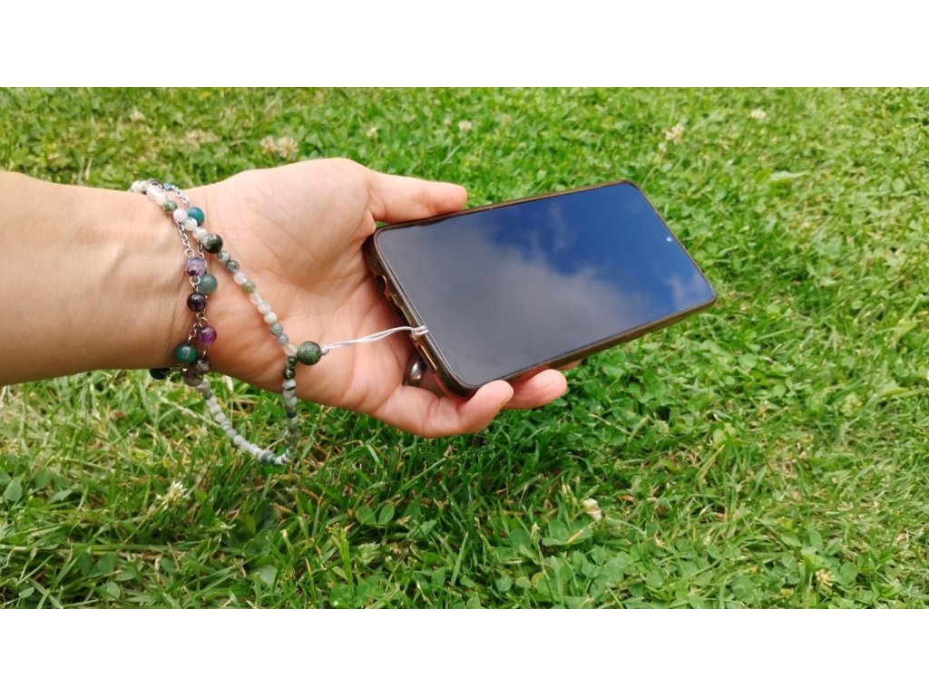 Originální minerální poutko na mobil – ručně vyráběné s energií přírodních kamenů a vlastním minirituálem.