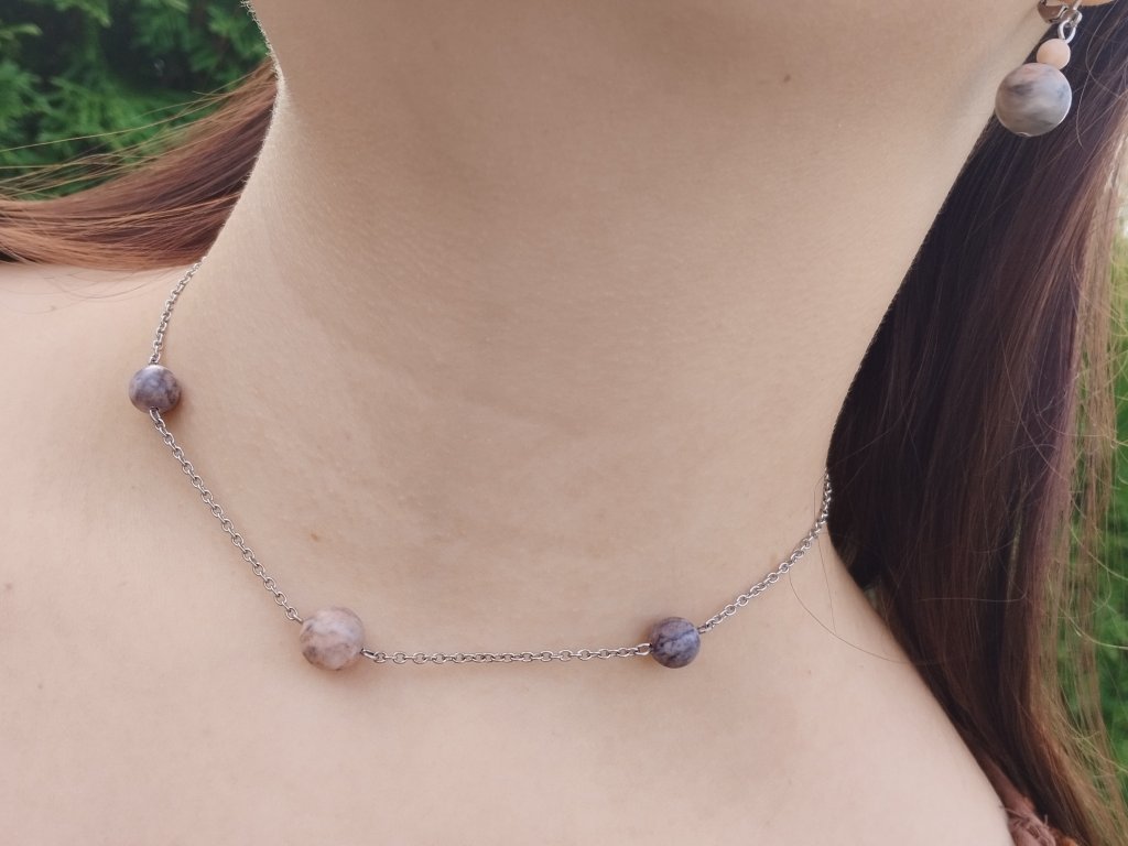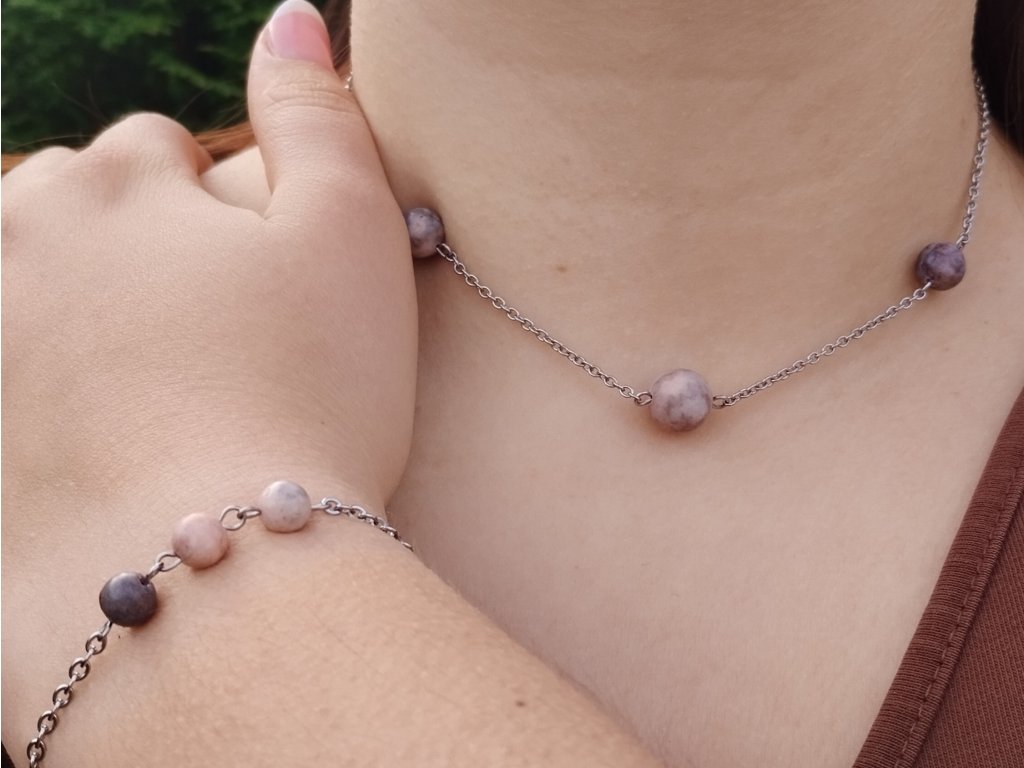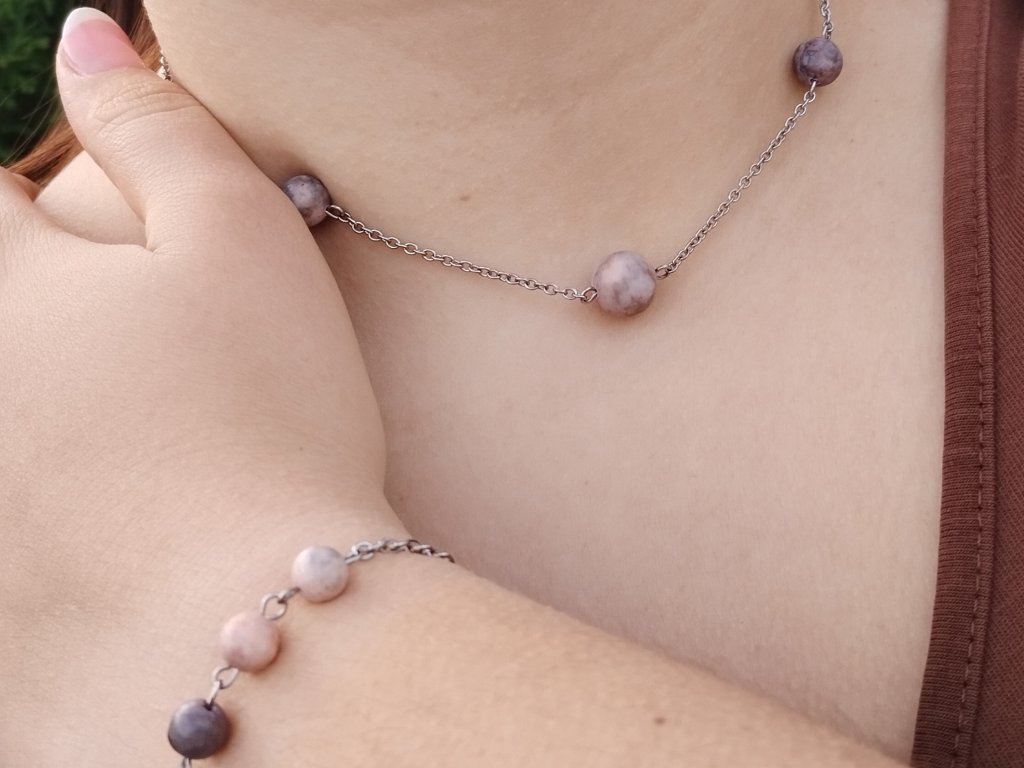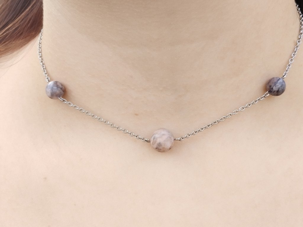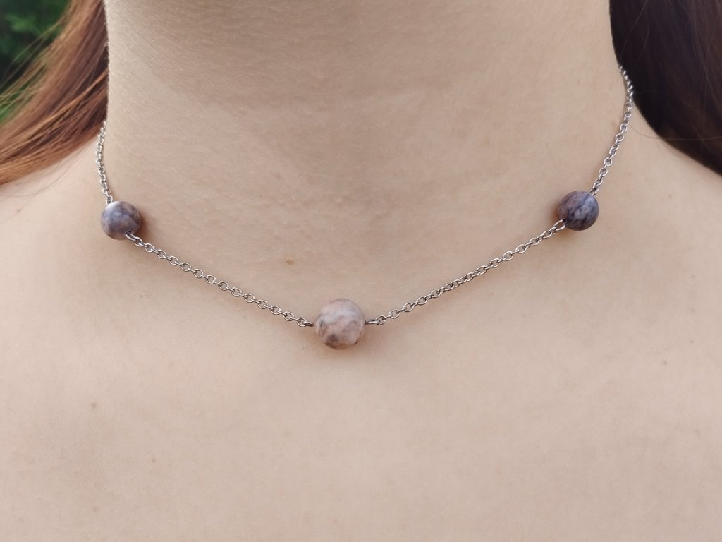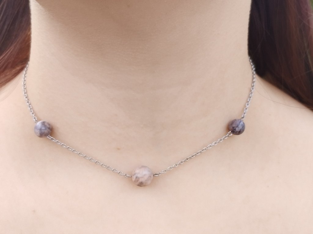 Náhrdelník Laskavost vznikl spojením minerálu jaspis zebra a řetízku z chirurgické oceli