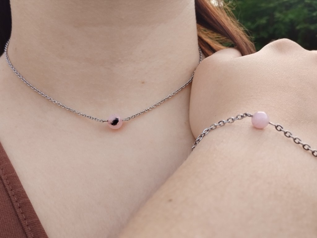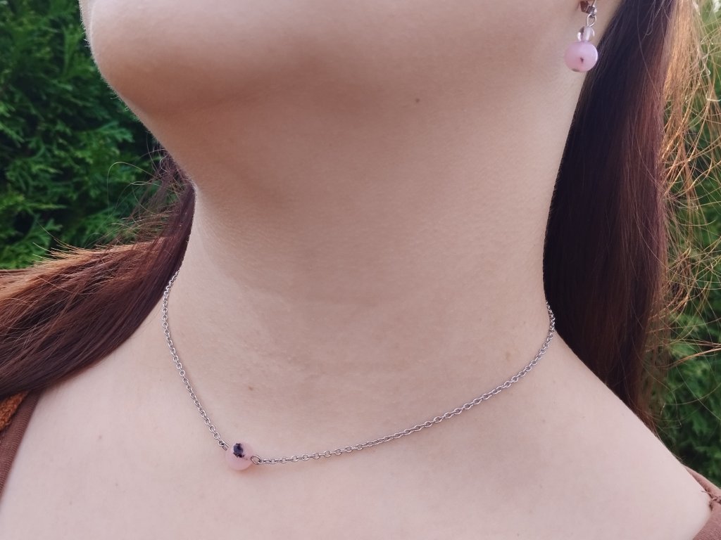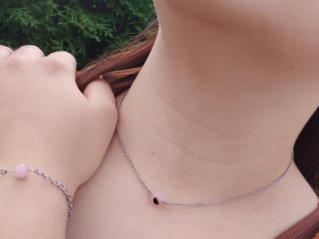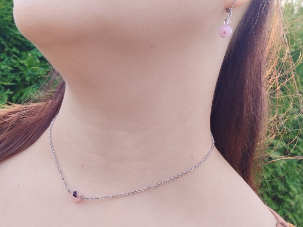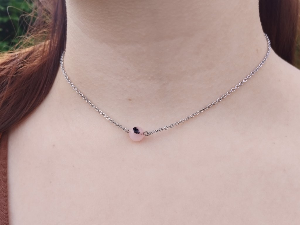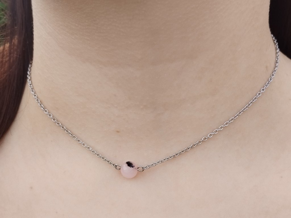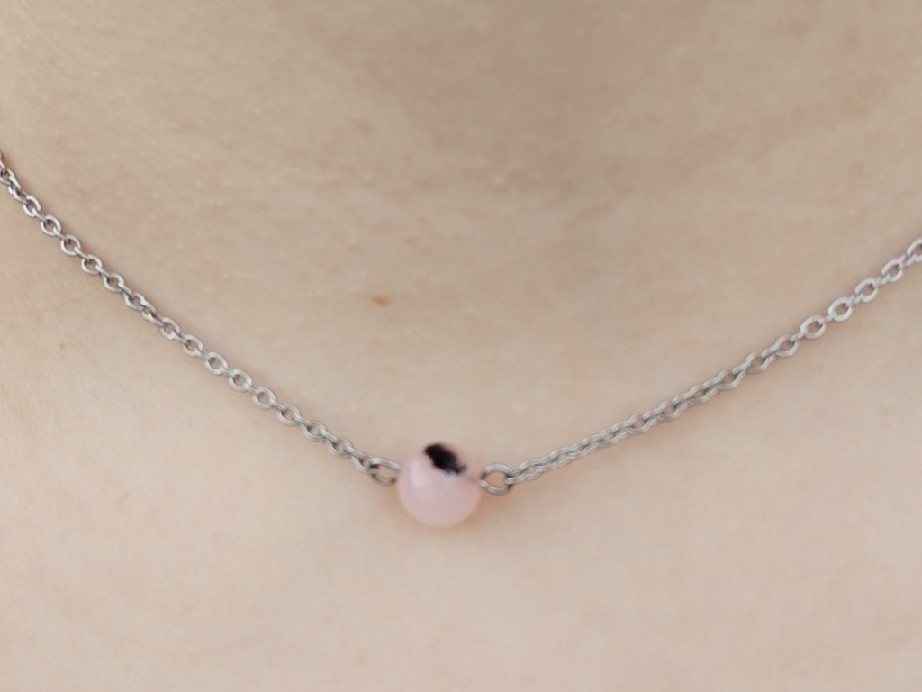 Náhrdelník Něžnost vznikl spojením minerálu třešňový jaspis a řetízku z chirurgické oceli.