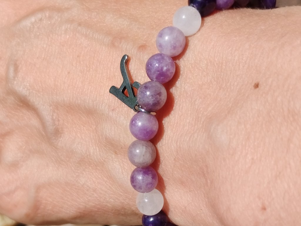 Součástí náramku je i písmenko z chirurgické oceli – může být počátečním písmenem jména, symbolem tajného významu, nebo jen připomínkou něčeho, co si necháváš pro sebe. Co v něm uvidíš ty, je jen na tobě.