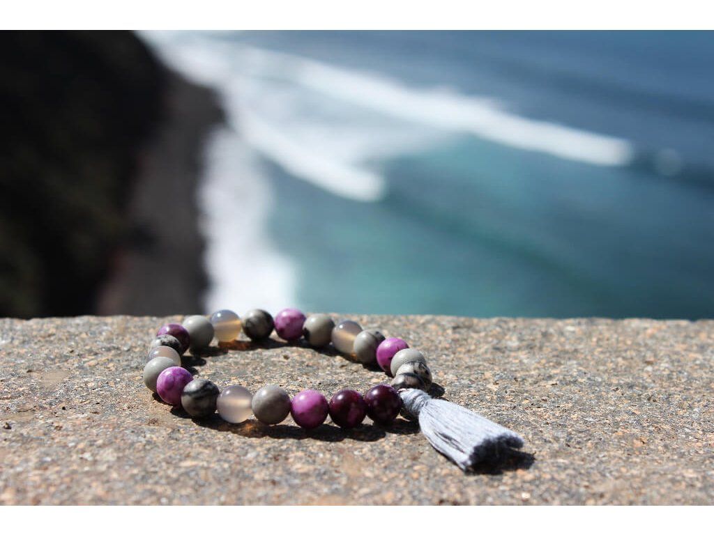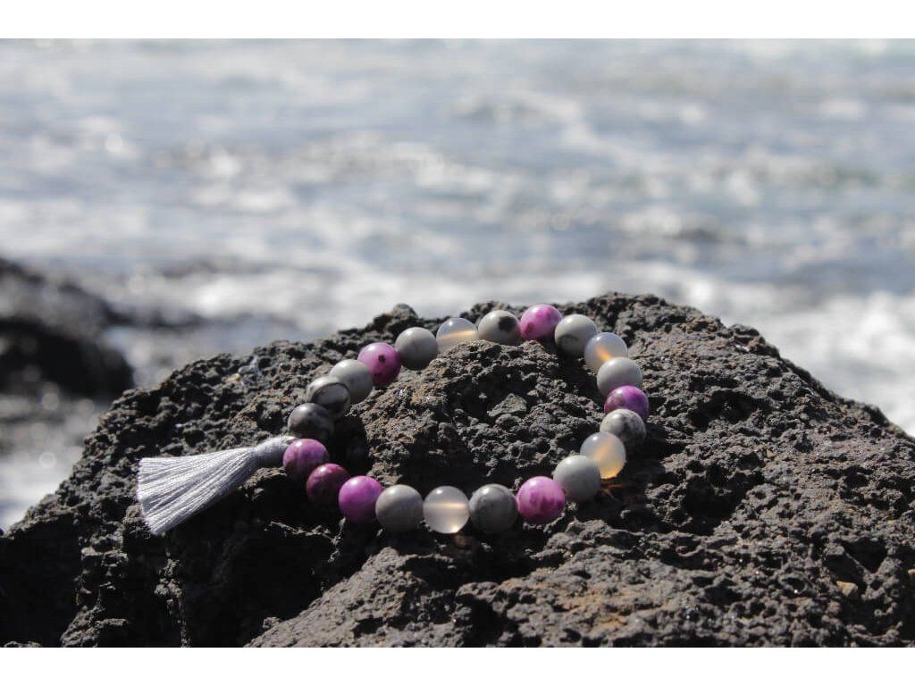 Originální šedo fialový náramek je harmonizačním talismanem z minerálních kamenů, jejichž společným symbolem je stabilita, bezpečí a jistota.