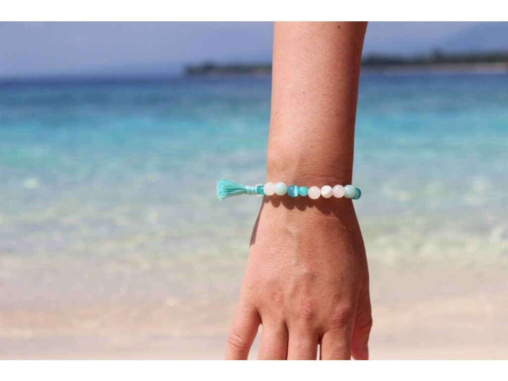 Harmonizační náramek vytvořený z minerálních kamenů v jemných odstínech tyrkysové a bílé je nabitý pozitivní energií klidu a míru.
