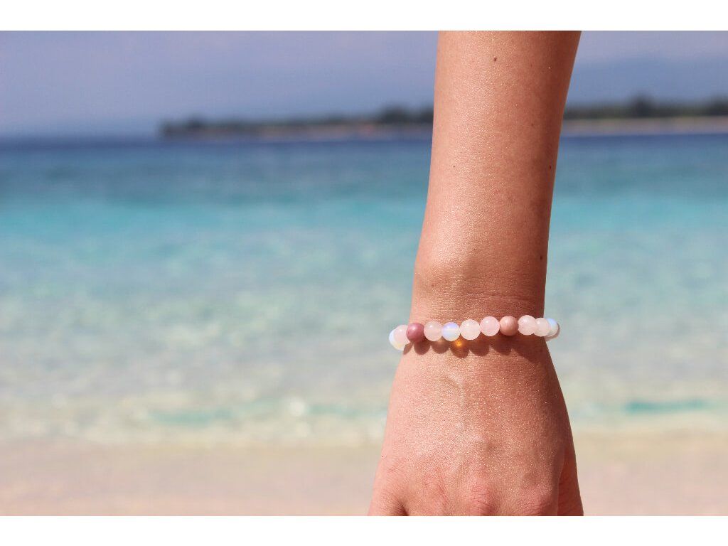 Něžný náramek v jemných odstínech růžové a bílé je nabitý energií lásky a sebedůvěry.