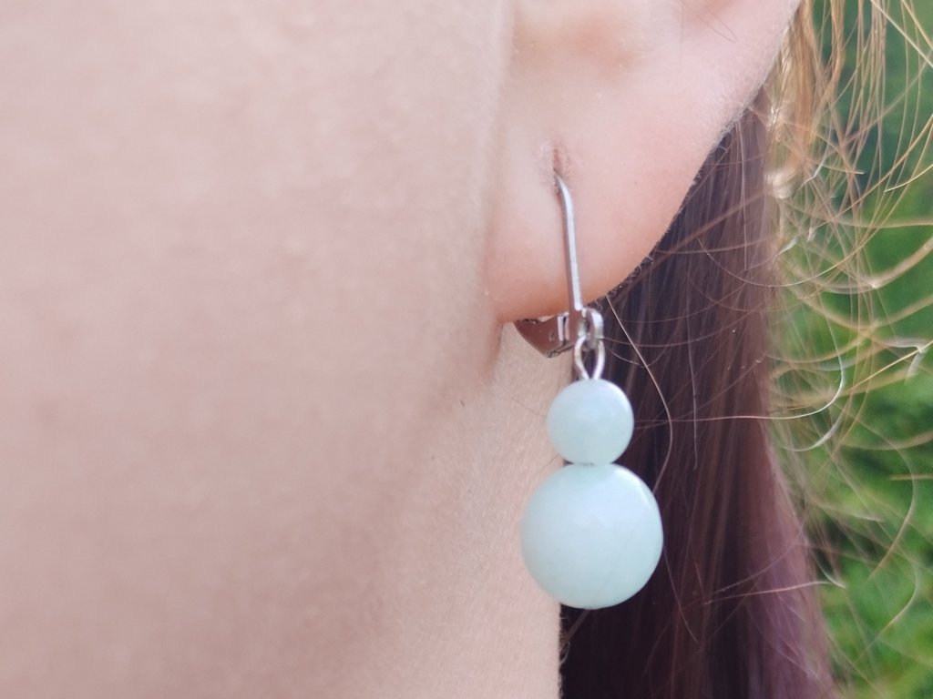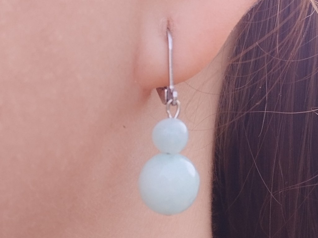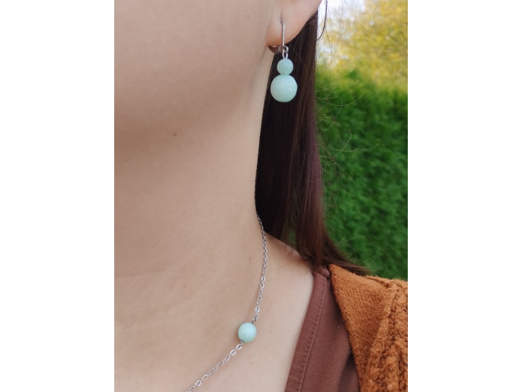 Náušnice z minerálu akvamarín, který je uklidňující, očistný a inspirující. Vnáší harmonii do svého okolí i do nás, probouzí důvěru a odpuštění, pomáhá nám překonat strach z mluvení, zlepšuje sebevyjádření, zmírňuje stres, podrážděnost a agresivitu.