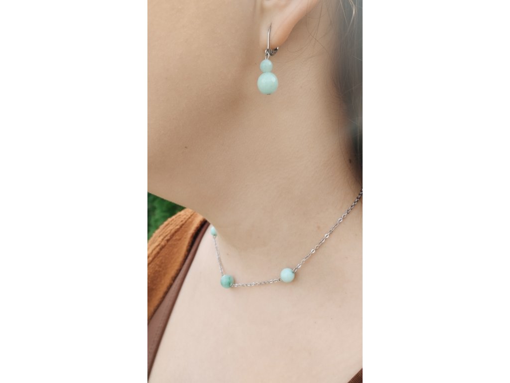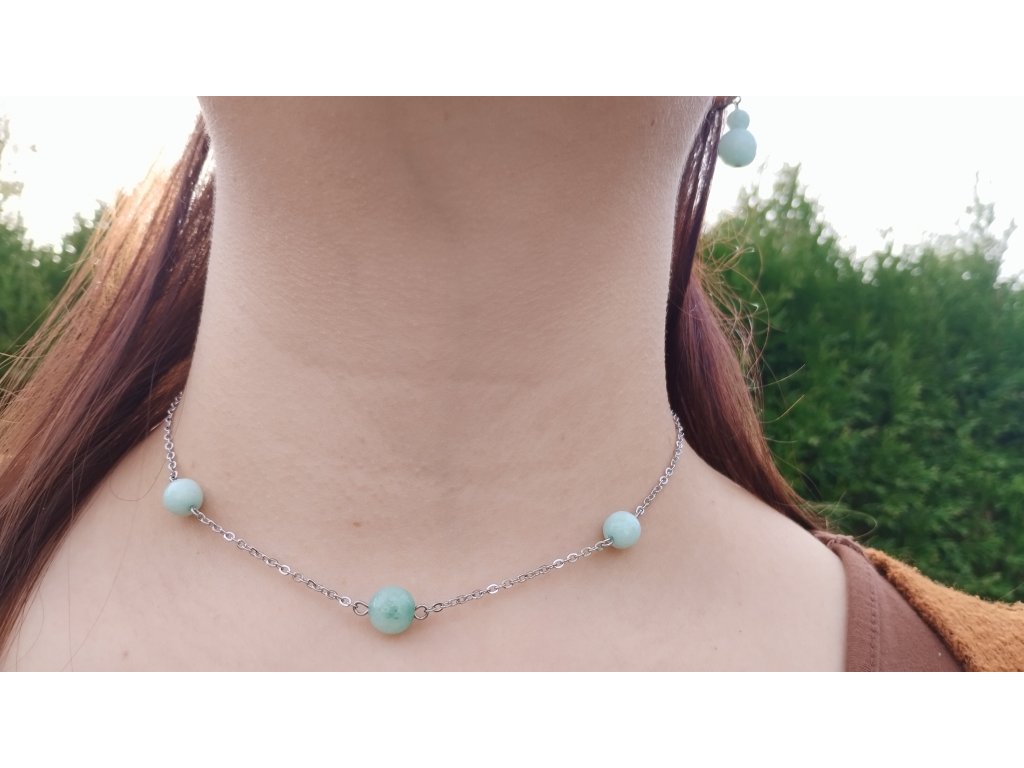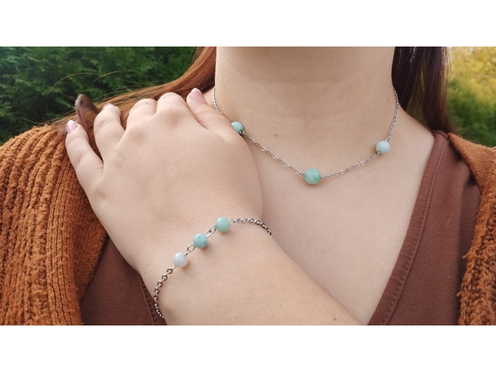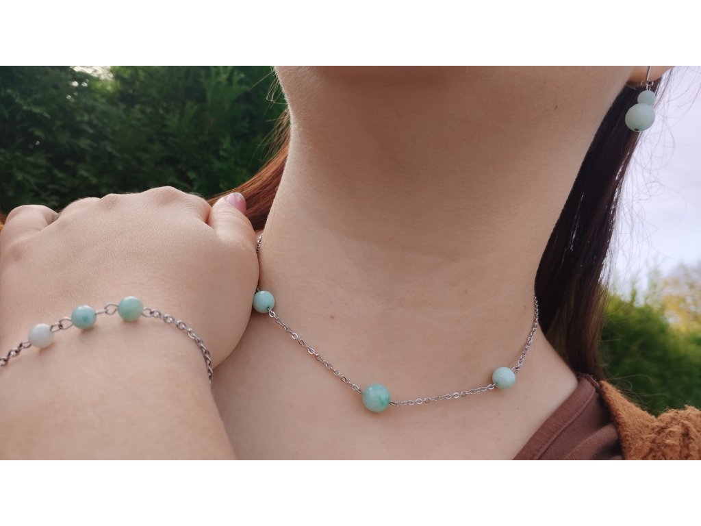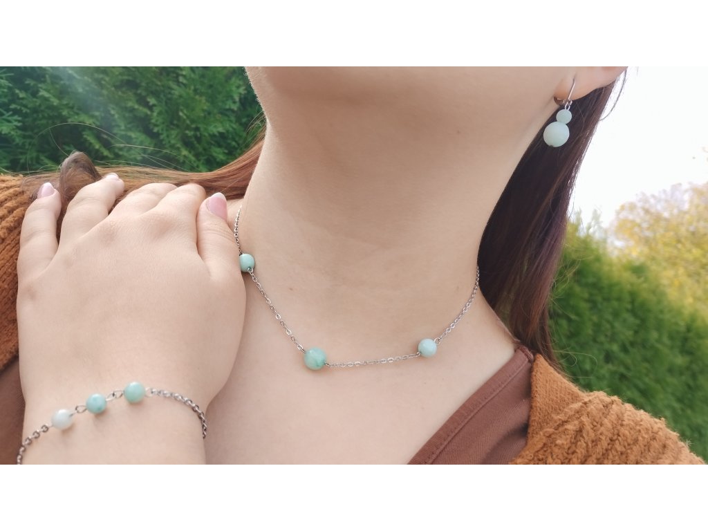 Náhrdelník, náramek a náušnice, dokonalé spojení krásných minerálů a chirurgické oceli, která je odolná, nečerná a je hypoalergenní a vhodná i pro citlivou pokožku.
