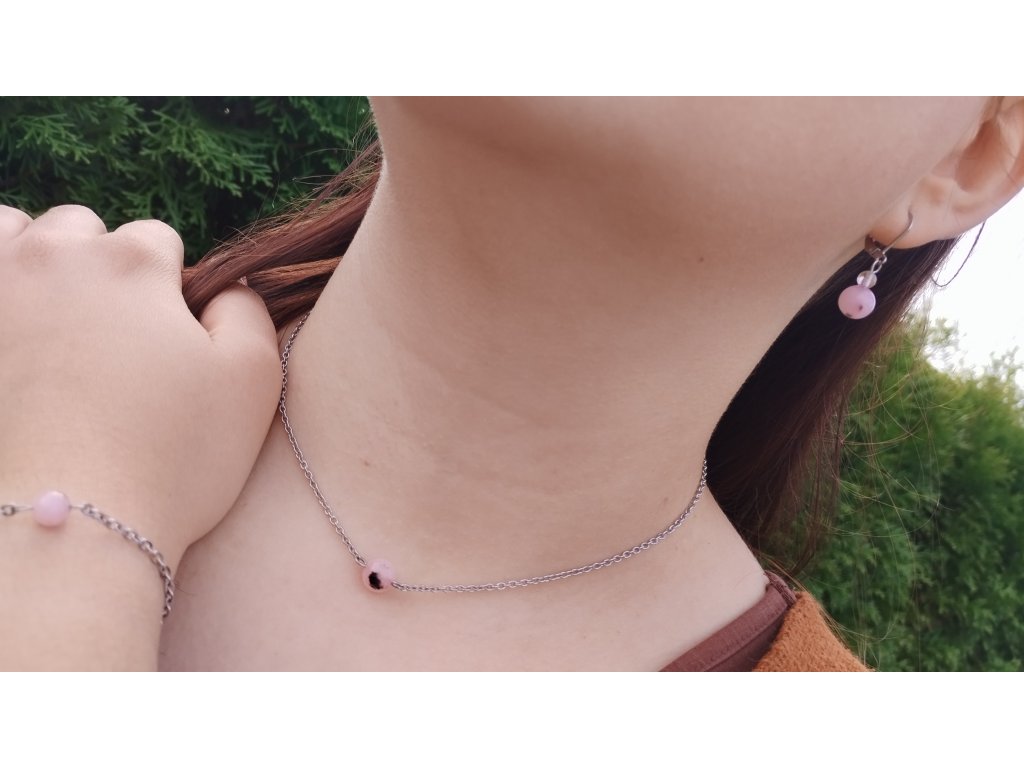 Náhrdelník, náramek a náušnice, dokonalé spojení krásných minerálů a chirurgické oceli, která je odolná, nečerná a je hypoalergenní a vhodná i pro citlivou pokožku.