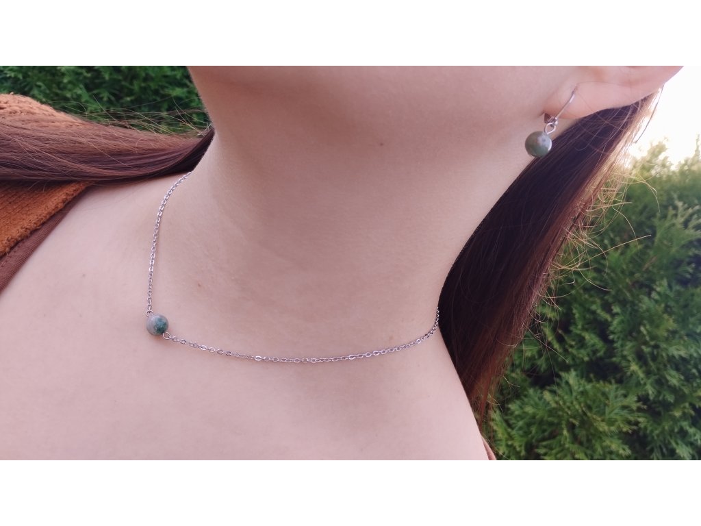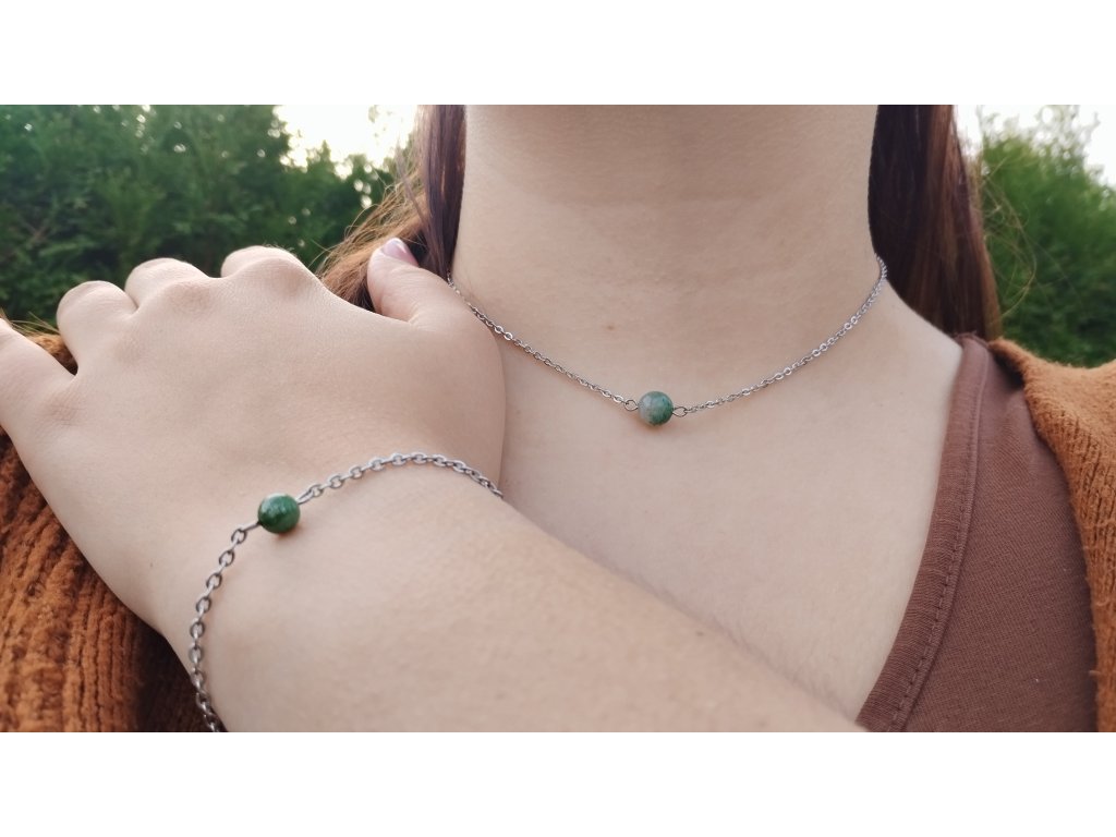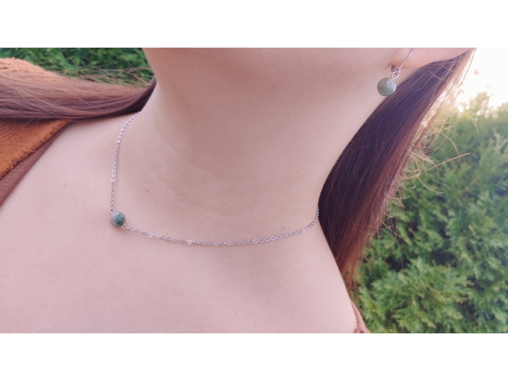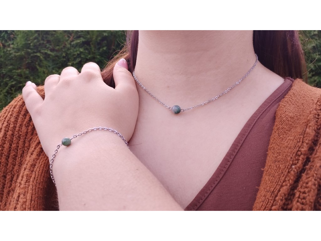 Náhrdelník, náramek a náušnice, dokonalé spojení krásných minerálů a chirurgické oceli, která je odolná, nečerná a je hypoalergenní a vhodná i pro citlivou pokožku.